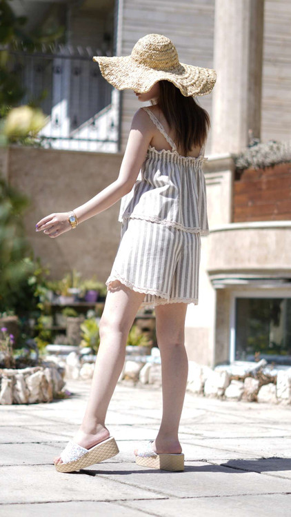 تاپ و شلوارکی با نوارهای قلابدوزی کتانی که تو را به گذشته های دور میبرد...